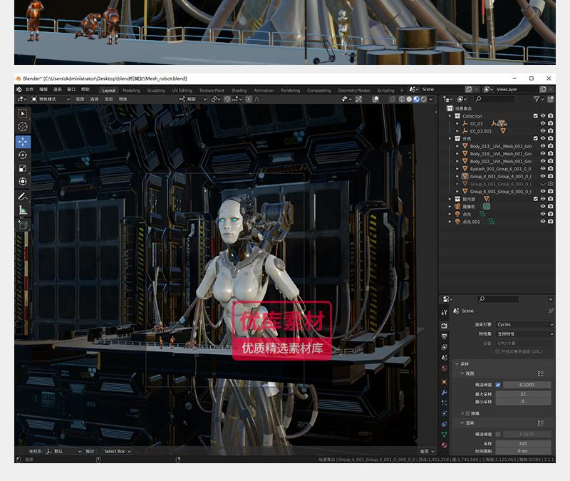> Blender科幻机械风人物场景机器人模型智能操作检测平台机器素材[编号:A826]