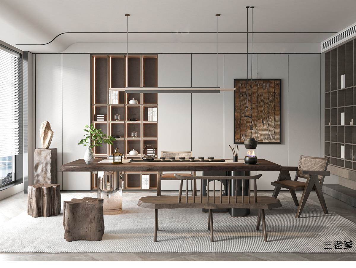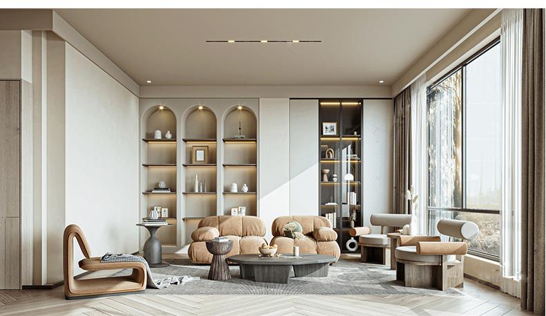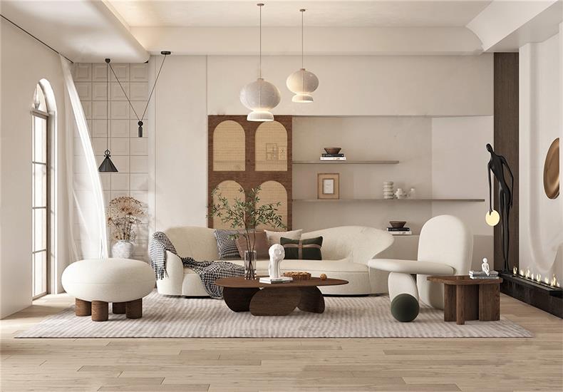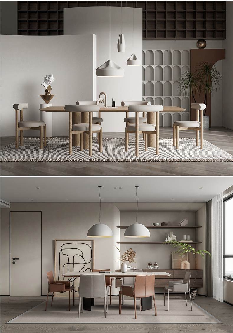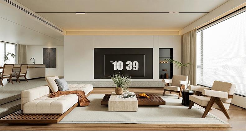 2024年侘寂风格草图大师现代极简家装室内设计客厅卧室SU模型素材