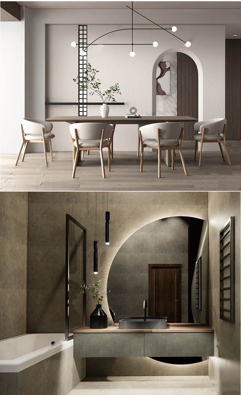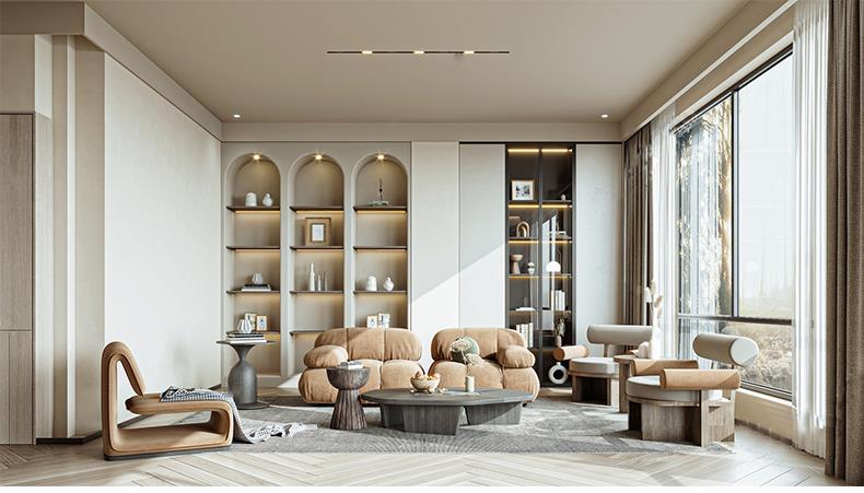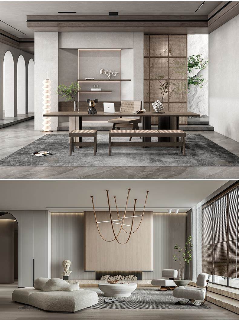 > 2024年侘寂风格草图大师现代极简家装室内设计客厅卧室SU模型素材[编号:A828]