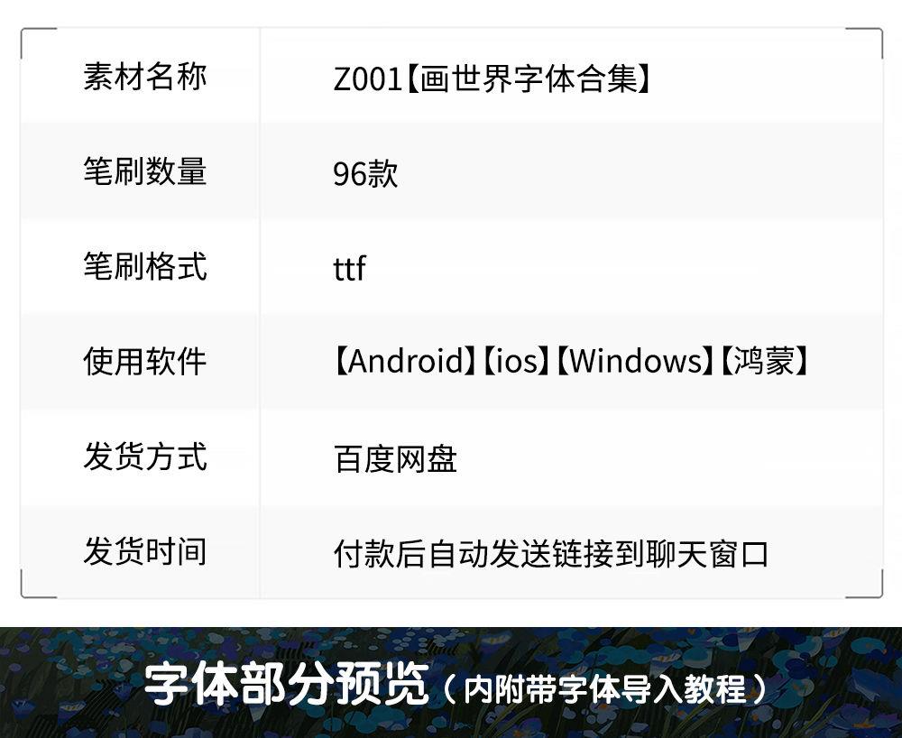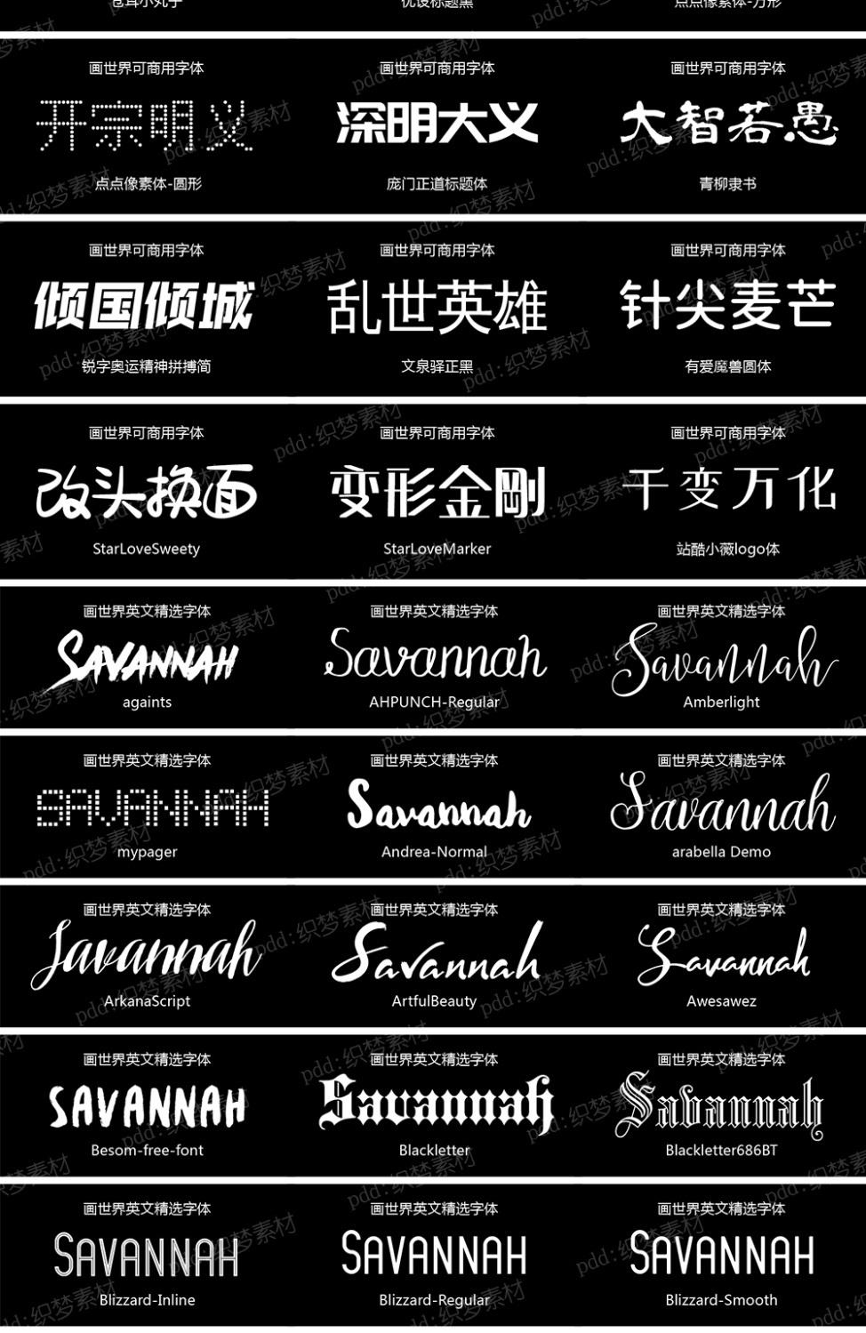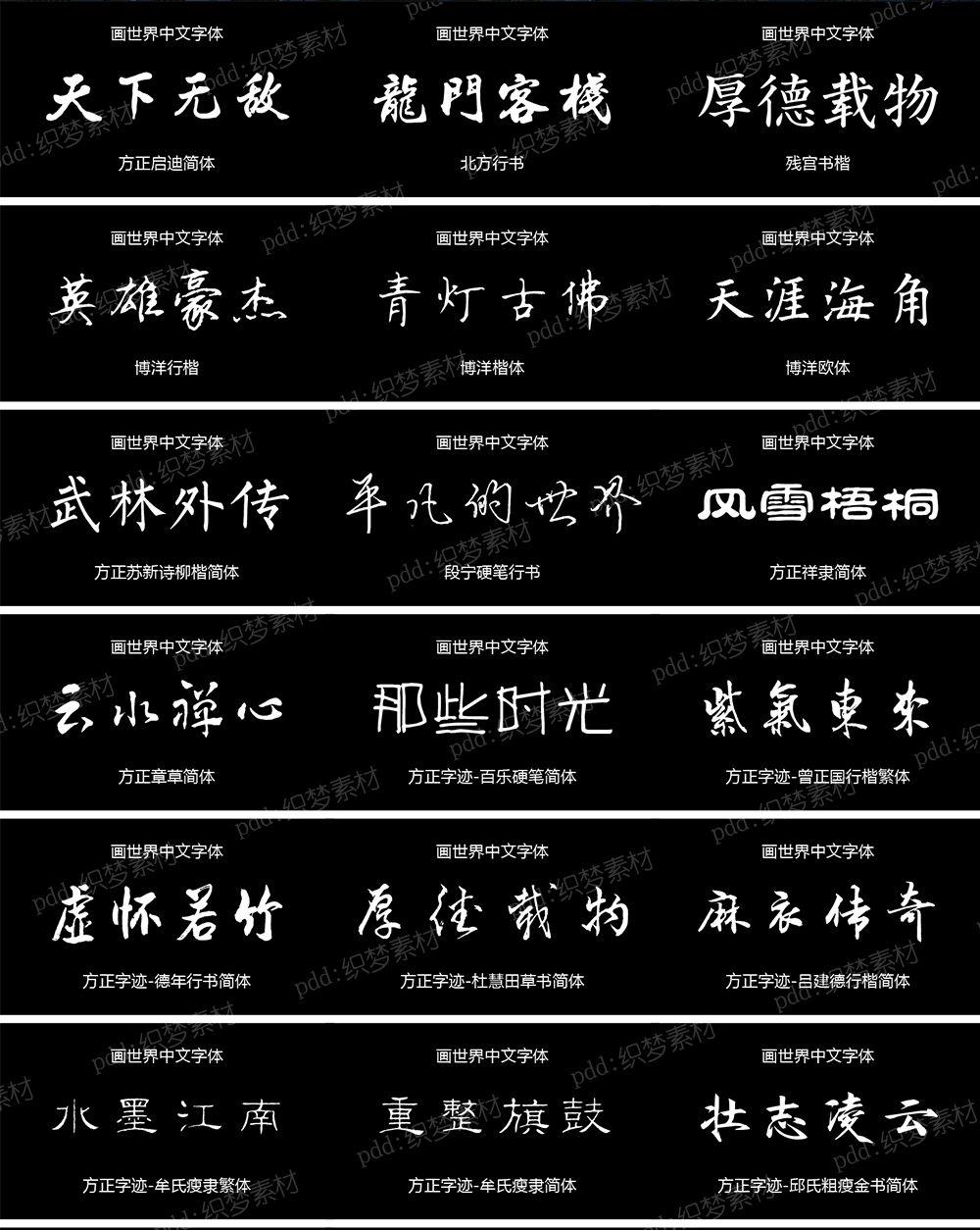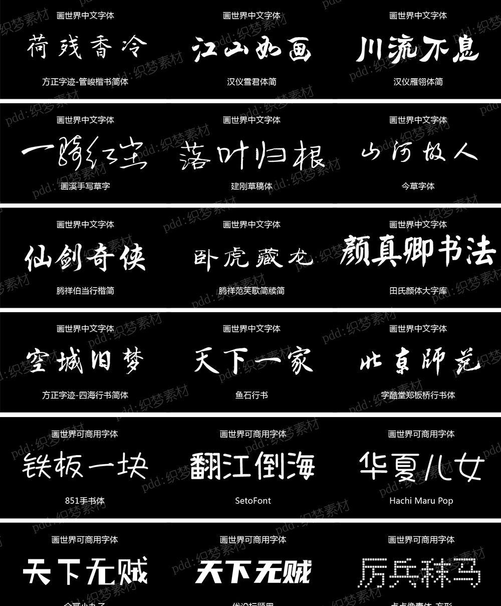> 画世界pro字体素材古风英文中文字体包苹果安卓手机ps字库合集[编号:A2577]