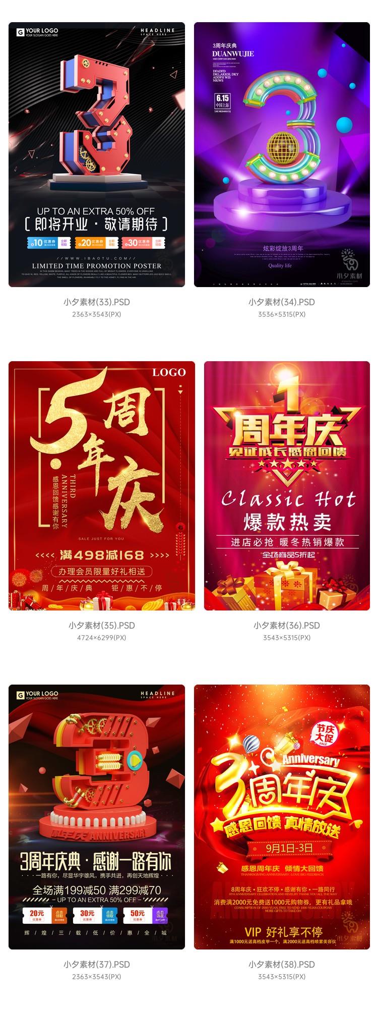 周年庆店庆创意大气促销活动海报PSD展板宣传单背景设计素材模板[编号:A5002]